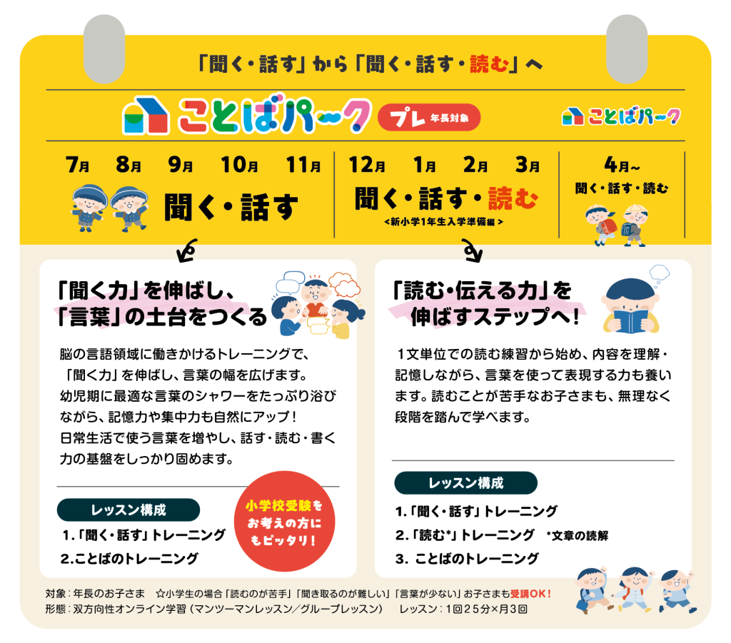 お子さまの「ことばの力」の土台を、楽しみながらじっくり一緒に育てていきましょう!